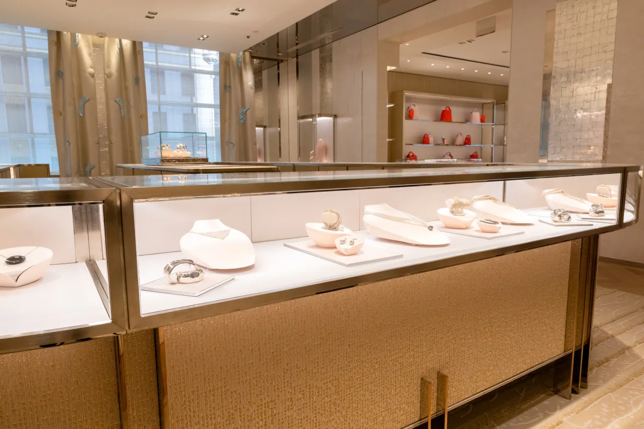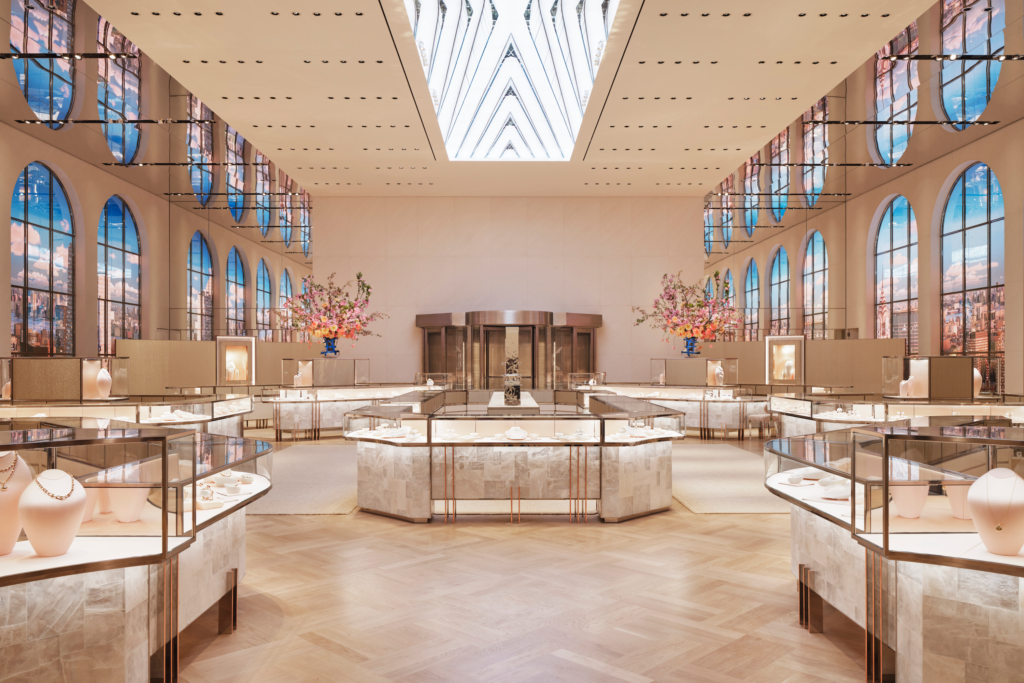 The flagship on 57th Street and Fifth Avenue, now known as “The Landmark”, reintroduces the world to a new Tiffany & Co. Custom artwork, never-before-seen jewels and immersive displays define the new Landmark, which is also one of the largest stores in Manhattan”